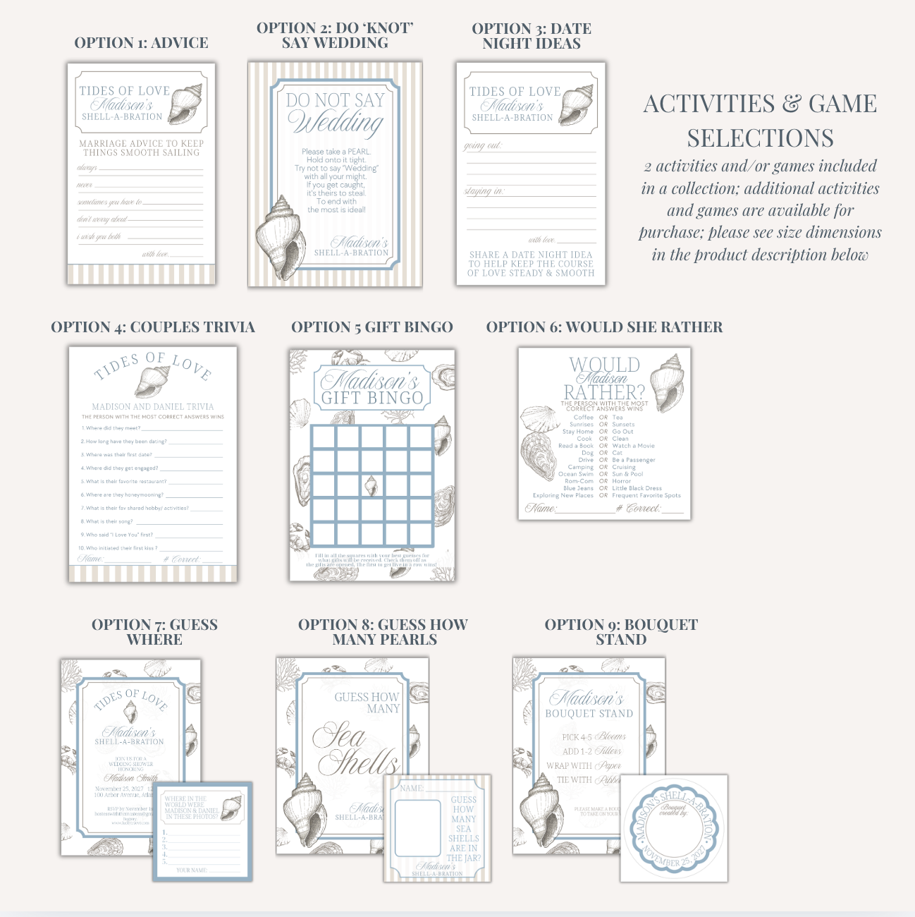 - Two (2) Activities or Games from our list of fun options, complete with mini pencils for guests to fill them out